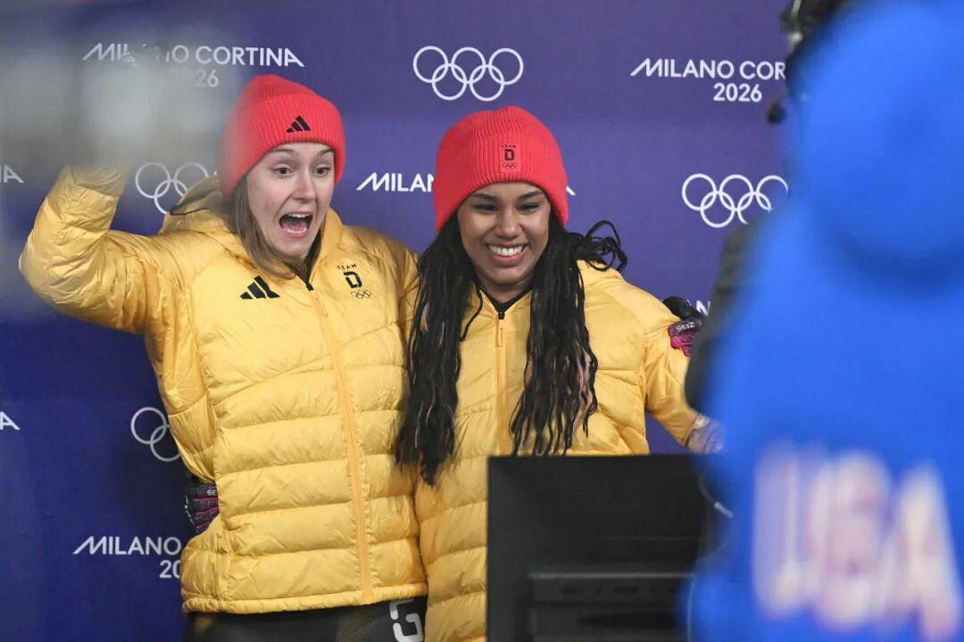 前两轮后,两对德国组合位居第一和第二名,美国组合凯莉·阿姆布鲁斯特·汉弗莱斯与贾思敏·琼斯依靠首轮滑出56.92秒的赛道纪录,暂居第三。中国怀明明/王璇组合和应清/王瑜组合分别位列第13、20名。